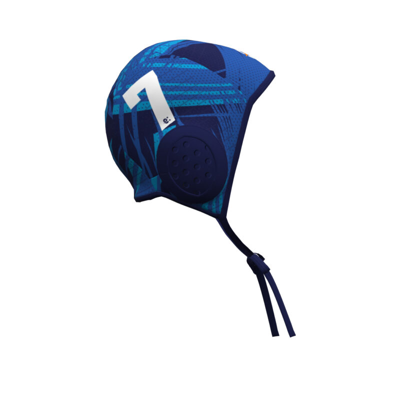 Calottina waterpolo in sublimazione. Cuciture rinforzate. Laccio monocolore o personalizzabile. Ampia scelta colori per i paraorecchi.