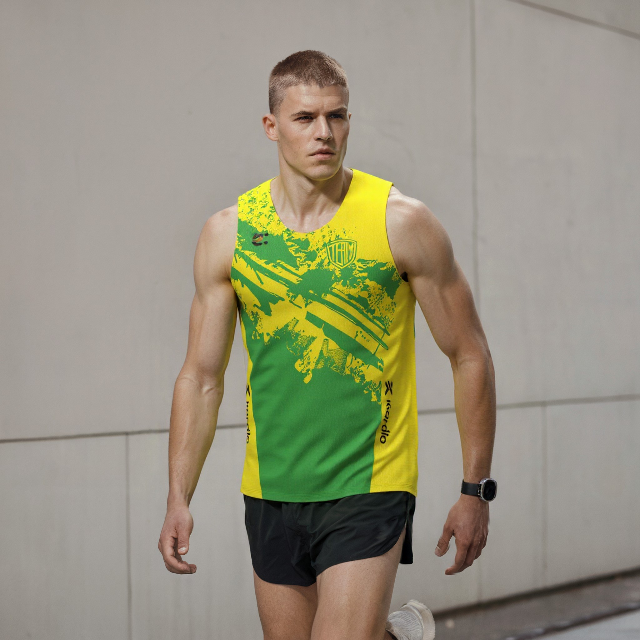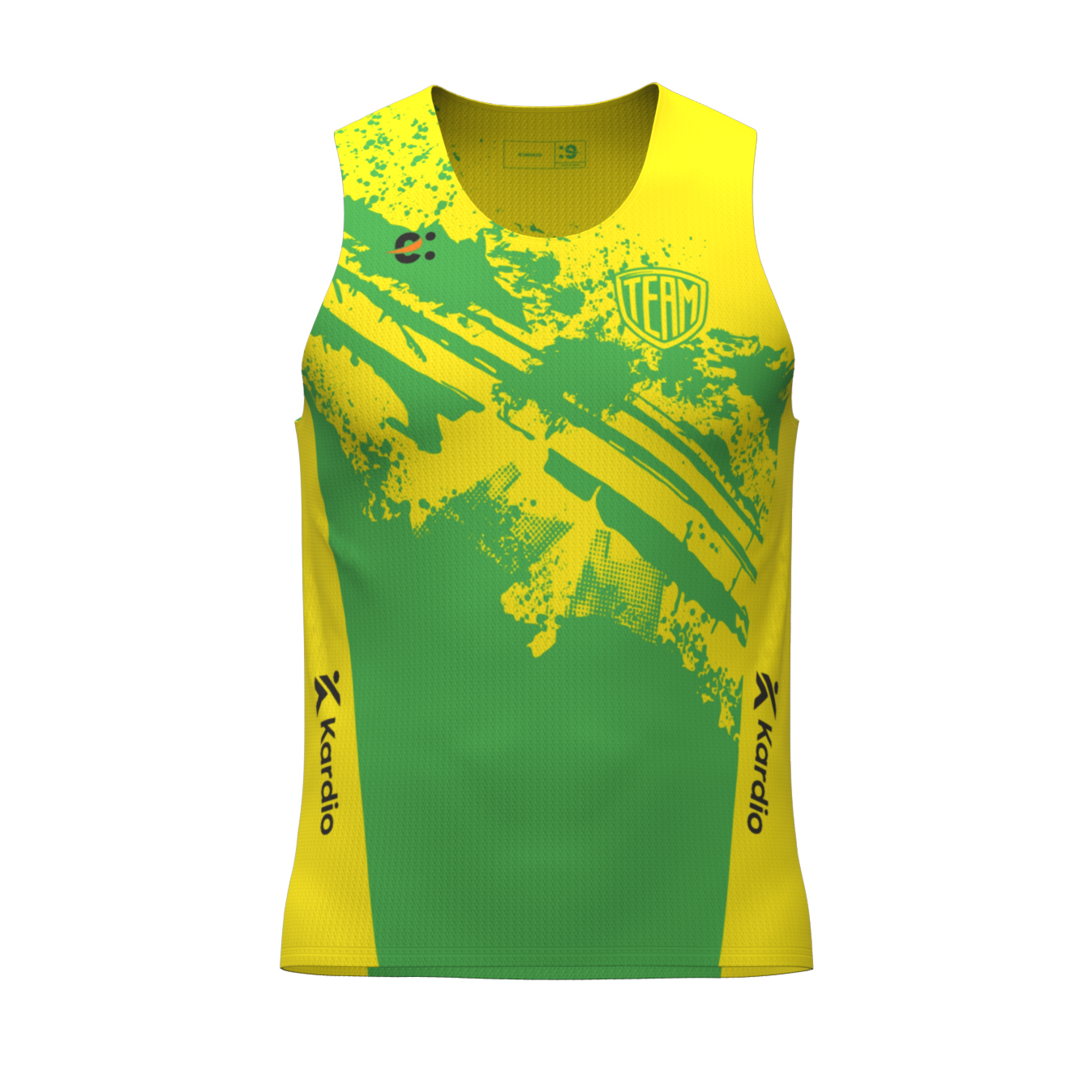 Canotta running uomo basica, personalizzata in sublimazione. Girocollo e giromanica con sola piega per il massimo comfort. Asciugatura rapida.