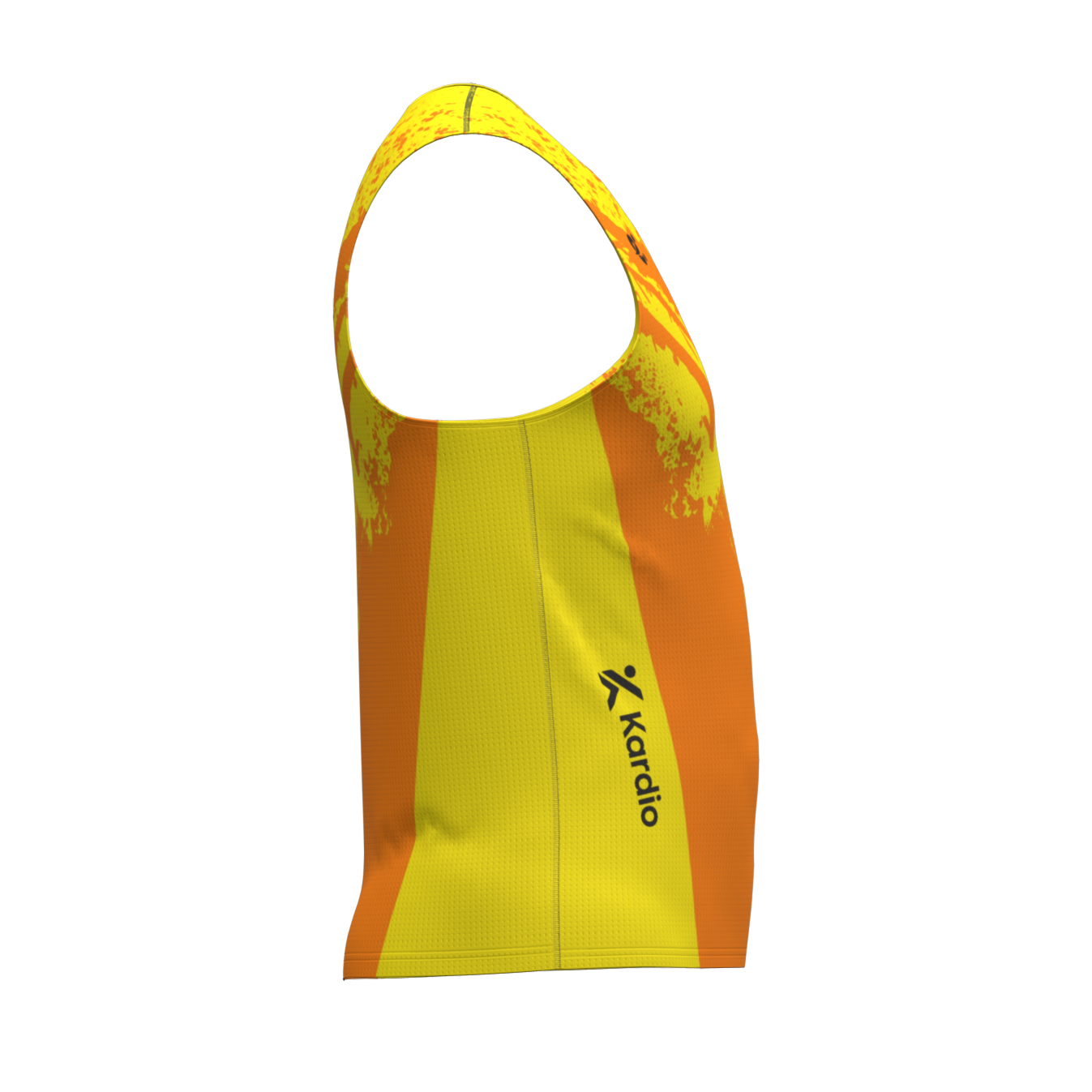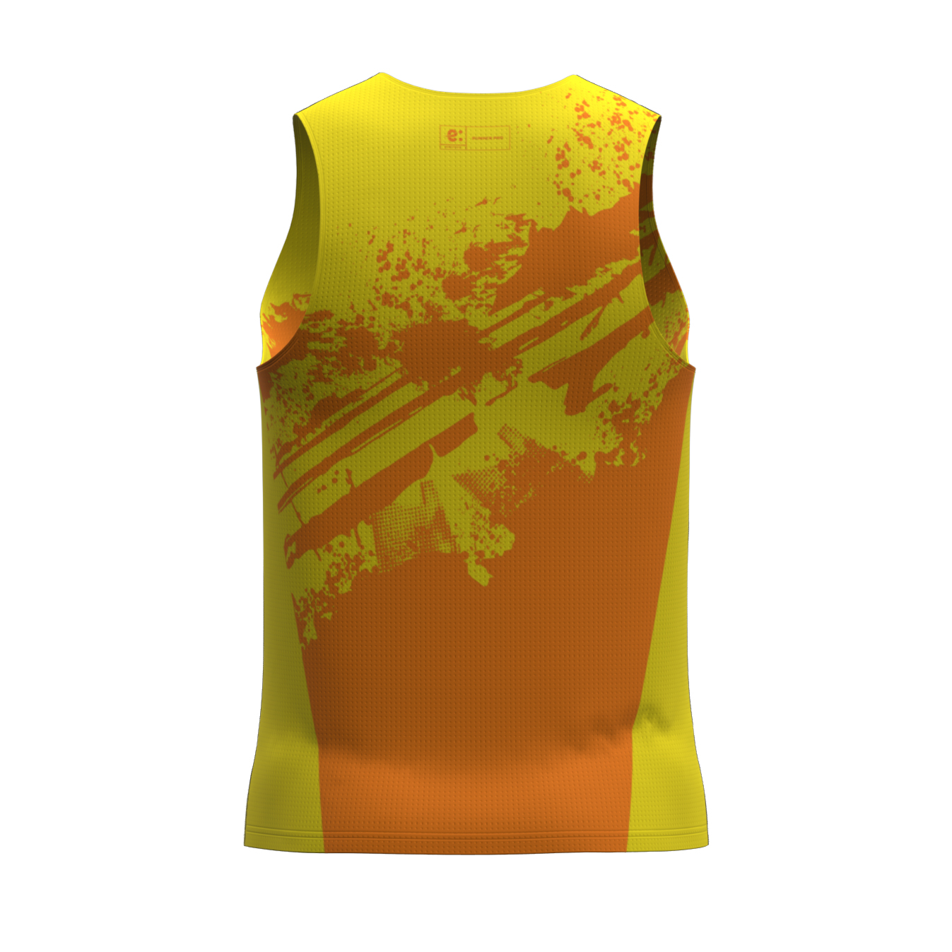 Canotta running uomo professionale in sublimazione. Girocollo e giromanica con sola piega per il massimo comfort. Cuciture piatte. Asciugatura rapida.