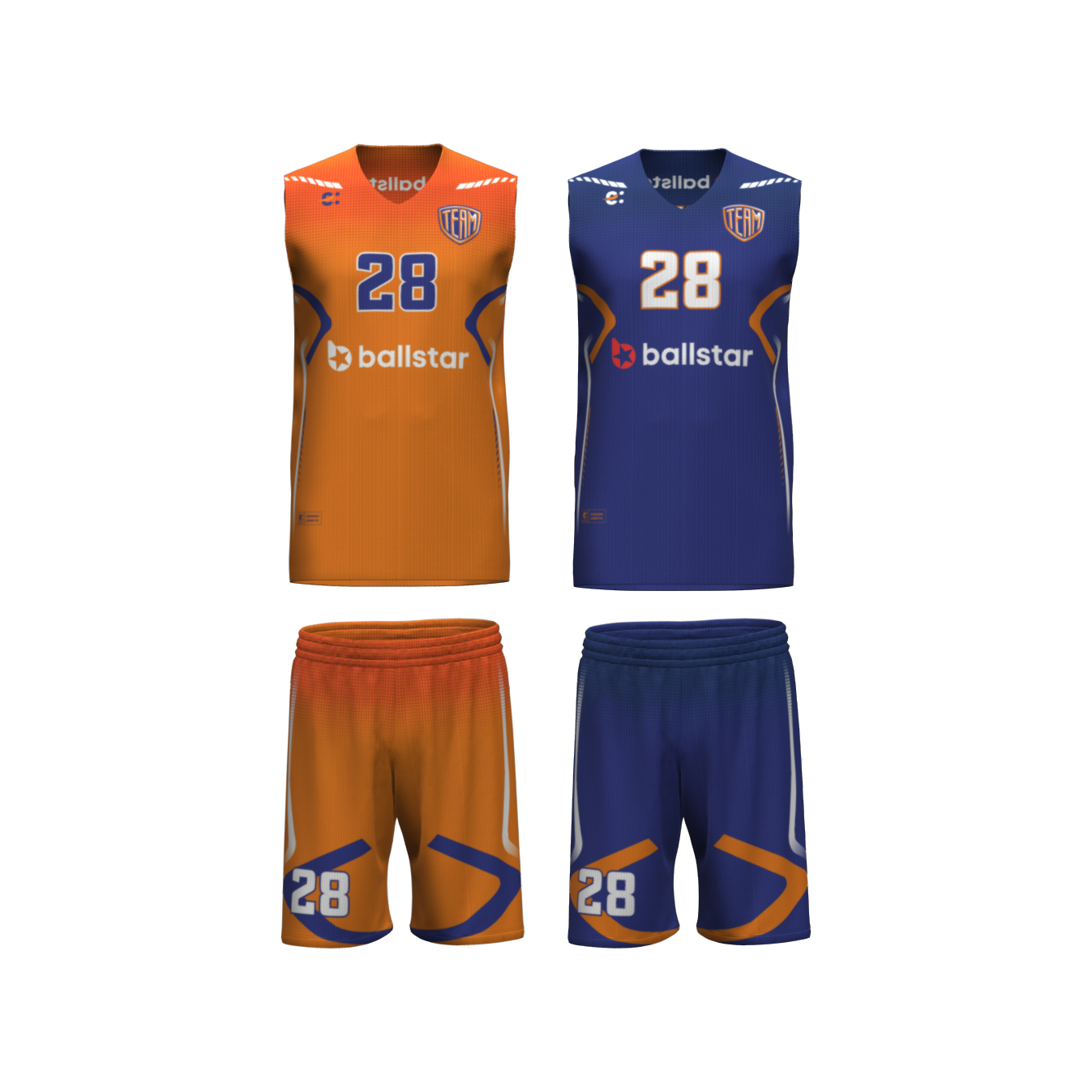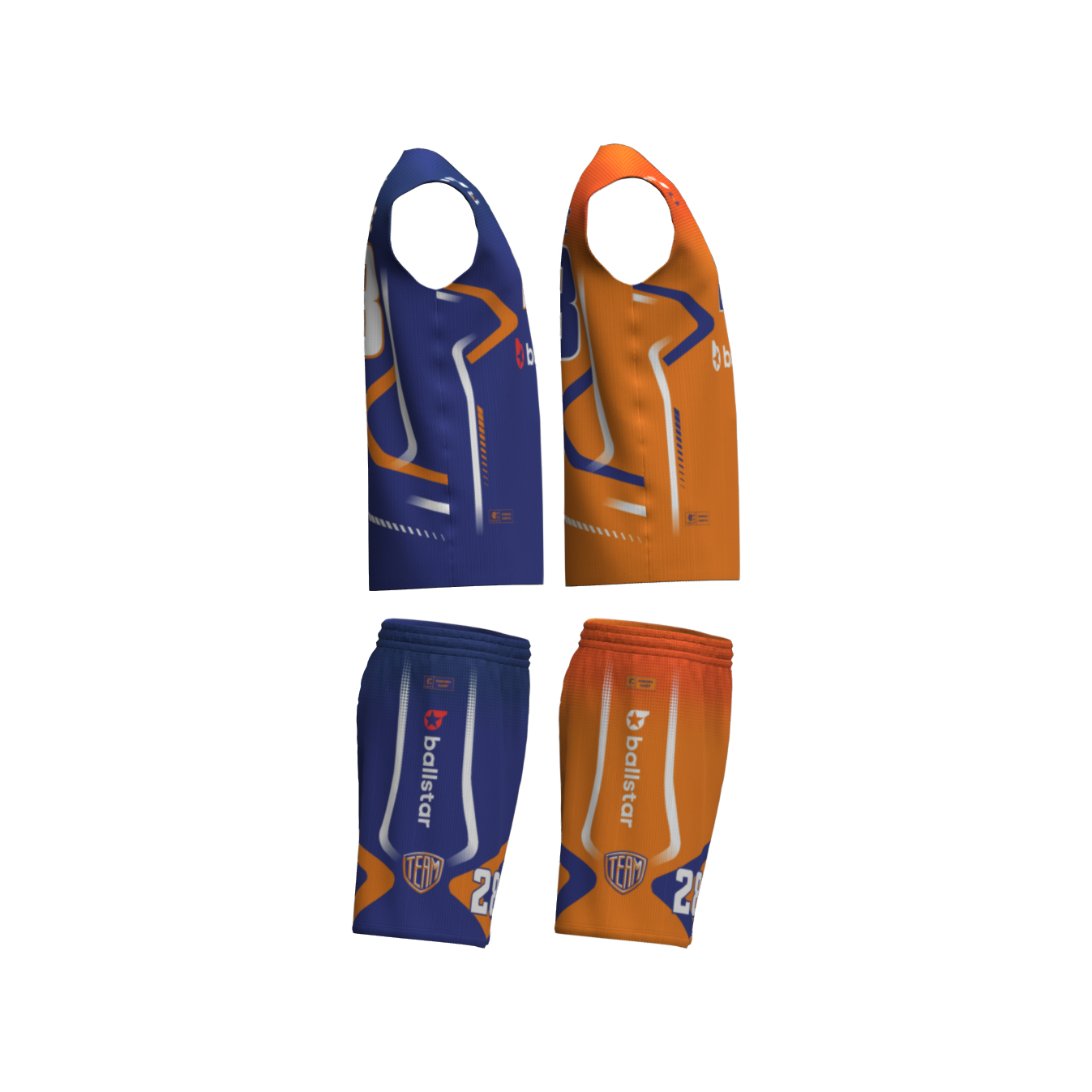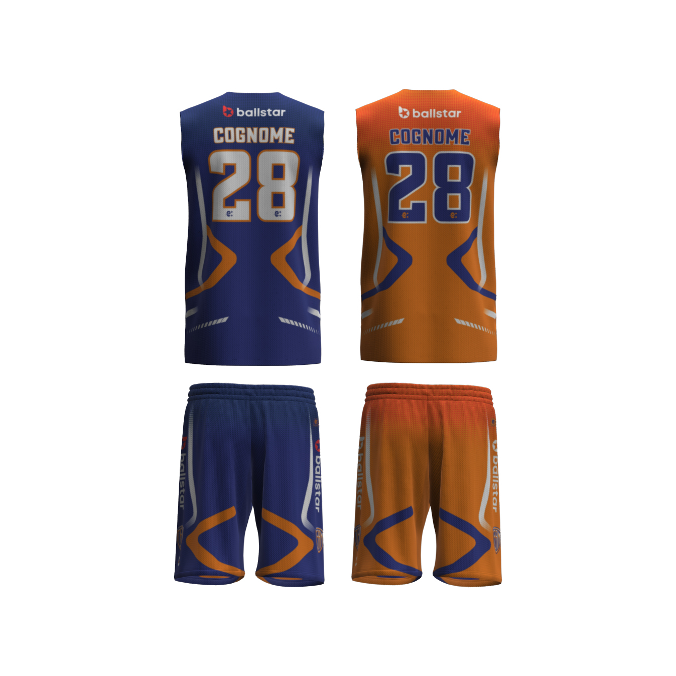 Divisa basket double face in sublimazione. Ideale per settori giovanili allo scopo di ottenere due divise in sublimazione in una. Laccio in vita regolabile con colore a scelta.