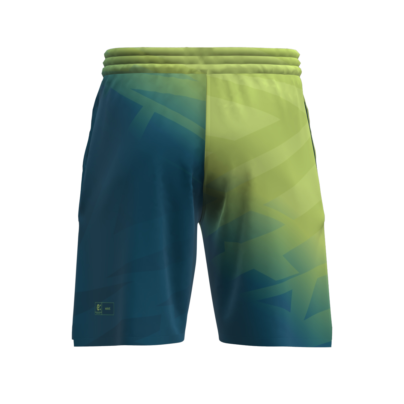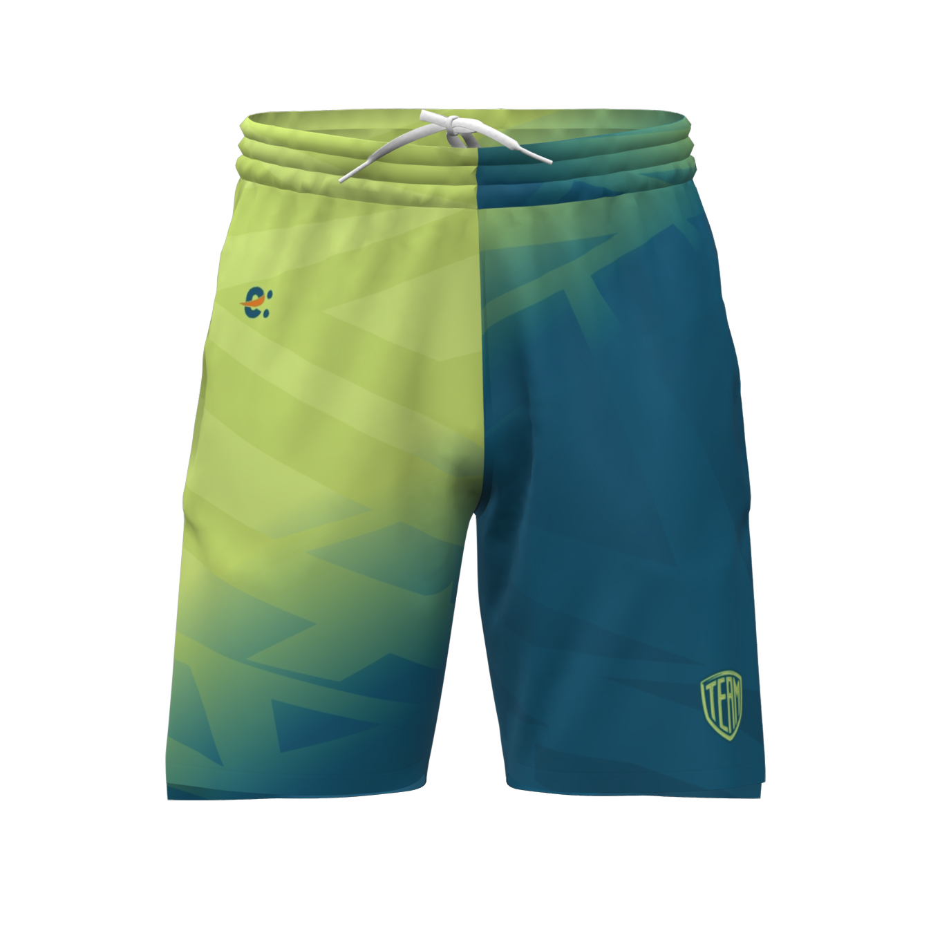 Pantaloncini tennis padel personalizzati in sublimazione. Taglio sopra il ginocchio. Due tasche. Spacchetti laterali.