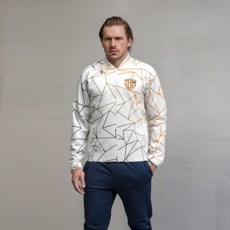 Giacca tuta full zip in sublimazione. Colletto College. Unisex. Tessuto leggermente garzato idoneo a tutte le stagioni. Vestibilità regolare.
